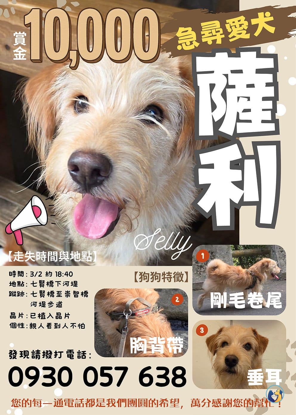 薩利需要你的幫助,讓牠平安回到家 走失方位:基隆市七堵區 找到請電:0930-057-638 — 👉 點我加入 TG 交流群: https://t.me/twpetchat